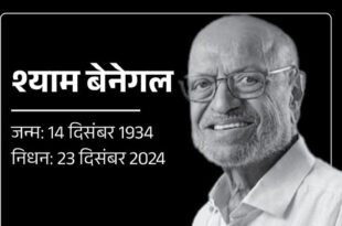 और पढ़ें »फिल्म निर्देशक श्याम बेनेगल गंभीर विषयों को कलात्मक ढंग से करते थे प्रस्तुत: मुख्यमंत्री डॉ. यादव
