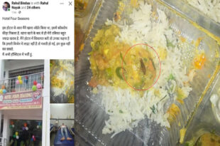 और पढ़ें »होटल फोर सीजन से स्विगी से खाना ऑर्डर किया, जिसमें कॉकरोच मिला,इसके बाद युवक तबीयत खराब हो गई