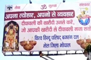 और पढ़ें »दीपावली से पहले भोपाल में VHP के होर्डिंग्स से मचा बवाल, ‘अपनों से व्यवहार’ नारे पर सियासत गरमाई