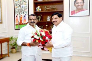 भोपाल मुख्यमंत्री डॉ. मोहन यादव से केंद्रीय सूचना एवं प्रसारण तथा संसदीय कार्य राज्यमंत्री डॉ. एल. मुरुगन ने बुधवार को मुख्यमंत्री निवास स्थित समत्व भवन में सौजन्य भेंट की। मुख्यमंत्री डॉ. यादव ने पुष्प-गुच्छ भेंट कर केंद्रीय मंत्री श्री मुरुगन का स्वागत किया। केंद्रीय राज्यमंत्री डॉ. मुरुगन ने पुष्प-गुच्छ, तिरूपति ...
