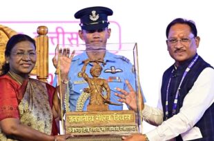 रायपुर में जनजातीय गौरव दिवस: CM विष्णु देव साय ने राष्ट्रपति द्रौपदी मुर्मु को भेंट की बिरसा मुंडा की बस्तर आर्ट प्रतिमा