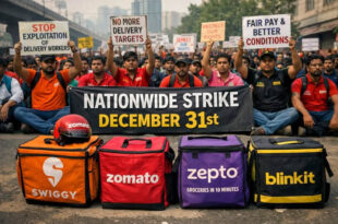 और पढ़ें »31 दिसंबर को डिलीवरी वर्कर्स के हड़ताल से स्विगी-जोमैटो जैसी कंपनियों को कितना होगा घाटा? जानिए डिटेल में