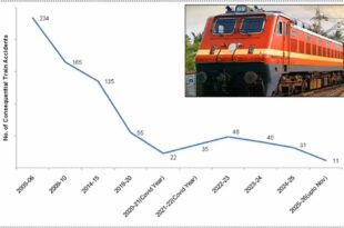 और पढ़ें »रेल सुरक्षा रिकॉर्ड सुधार में वृद्धि : वार्षिक दुर्घटनाएं 2004-14 के औसत 171 से घटकर 2025-26 में अब तक 11 रह गई हैं