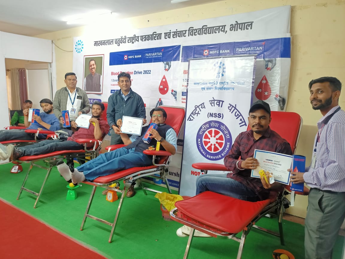 भोपाल / माखनलाल चतुर्वेदी विश्वविद्यालय की राष्ट्रीय सेवा योजना इकाई द्वारा रक्तदान शिविर का आयोजन किया गया