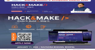 हैक & मेक 2026 नवाचार और स्टार्टअप संस्कृति को नई ऊँचाइयों तक ले जाने की दिशा में ऐतिहासिक पहल भोपाल में भारत की पहली ट्राई-ट्रैक नवाचार प्रतियोगिता ‘हैक & मेक’ 2026 का आयोजन भोपाल भोपाल में ‘हैक & मेक’ 2026 का आयोजन भोपाल के जहांनुमा पैलेस होटल में 11-12 जनवरी ...