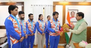 मुख्यमंत्री डॉ. यादव से पदक विजेता खिलाड़ियों ने की सौजन्य भेंट भोपाल मुख्यमंत्री डॉ. मोहन यादव से बुधवार को मुख्यमंत्री निवास पर 16वीं एशियन शूटिंग चैम्पियनशिप के 9 पदक विजेता खिलाड़ियों ने सौजन्य भेंट की। मुख्यमंत्री ने इन सभी पदक विजेता खिलाड़ियों को उनके प्रदर्शन के लिए बधाई दी। मुख्यमंत्री ...