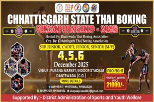 और पढ़ें »छत्तीसगढ़ दंतेवाड़ा में 5_6 दिसंबर को थाई बॉक्सिंग का आगाज़ :जिला प्रशासन कार्यक्रम को सफल बनाने में जुटी