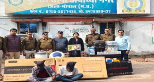 भोपाल गर्ग इलेक्ट्रॉनिक शोरूम में हुई चोरी का खुलासा, थाना अयोध्यानगर पुलिस ने 02 शातिर नकबजन किए गिरफ्तार, शोरूम में चोरी किए इलेक्ट्रॉनिक सामान एवं नगदी सहित लगभग 12 लाख रुपए का मसरूका जब्त ● पुलिस द्वारा आरोपियों से दिनांक 25.11.2025 की दरमियानी रात्री गर्ग इलेक्ट्रॉनिक्स में हुई नकबजनी ...
