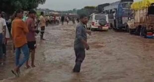 बुरहानपुर बाढ़ ने शनिवार को दूसरी बार इंदौर-इच्छापुर नेशनल हाइवे दो घंटे से ज्यादा समय तक जाम कर दिया। जिससे हाईवे पर वाहनों की लंबी कतारें लग गईं। इस जाम में एम्बुलेंस और यात्री बसें भी काफी देर तक फंसी रहीं। बाद में ग्रामीणों ने किसी तरह उन्हें पार कराया। ...