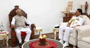 राज्यपाल पटेल से एडमिरल दिनेश कुमार त्रिपाठी ने की सौजन्य भेंट