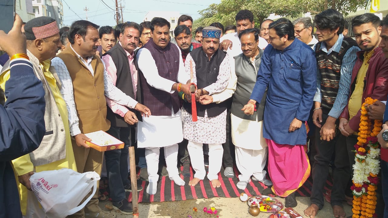 आम सभा, भोपाल : महापौर आलोक शर्मा ने विधायक रामेश्वर शर्मा एवं महापौर परिषद के सदस्य कृष्णमोहन सोनी की मौजूदगी में संजीव नगर में क्रांक्रीटीकृत सड़क के निर्माण कार्य हेतु भूमिपूजन किया। नगर निगम द्वारा नागरिकों की सुविधा के दृष्टिगत लगभग 23 लाख रूपये की लागत से संजीव नगर में सड़क का निर्माण कार्य कराया जायेगा। भूमिपूजन के अवसर पर पूर्व पार्षद श्री पुष्पेन्द्र जैन सहित अन्य पदाधिकारी और गणमान्य नागरिक मौजूद थे।