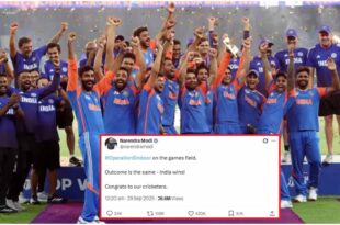 और पढ़ें »टीम इंडिया को पीएम मोदी की बधाई पोस्ट वायरल, व्यूज़ ने बनाया नया रिकॉर्ड